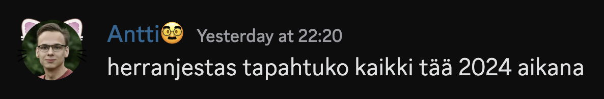 Jo vuodesta 2022 Testausserveri ry on aktiivisesti toiminut aatteidensa mukaisesti. Joka vuosi olemme saaneet joukkoomme lisää jäseniä ja yhteistyökumppaneita. Vuosi 2024 on tuntunut erityisesti tasaisen kasvun ja vakiintumisen vuodelta. Olemme päässeet toteuttamaan projekteja ja tapahtumia, jotka olisivat aikaisemmin tuntuneet täysin mahdottomilta. Varapuheenjohtajan sanoin: