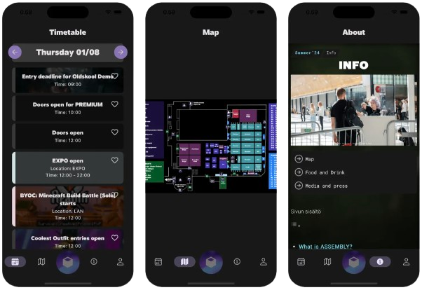 Jäsenistön toiveesta otimme yhteyttä Assembly-pelifestivaalin järjestäjiin yhteistyömahdollisuuksien merkeissä, ja lopputuloksena syntyi merkittävä yhteisprojekti. Projektivalikoimamme laajeni uudella hankkeella, kun saimme vastuullemme Assemblyn tapahtumasovelluksen suunnittelun ja toteutuksen.
