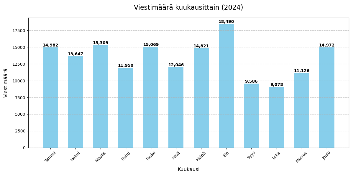 Vuonna 2024 yhteisössä lähetettiin 208 000 viestiä, siis keskimäärin 570 viestiä päivässä.